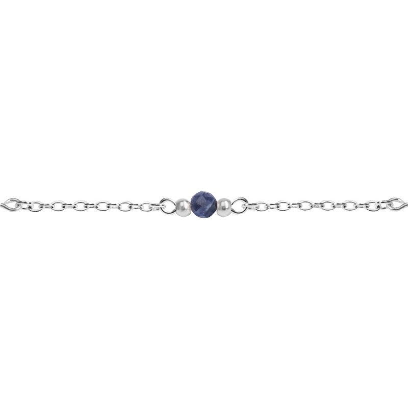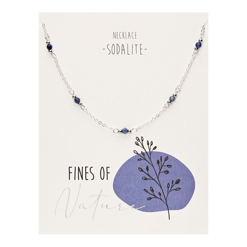 Een elegant, filigrane ketting met zeven kleine, gefacetteerde echte blauwe sodalietstenen. De ketting heeft een lengte van 40 cm plus nog een verlengkettinkje van ca. 5 cm waardoor hij variabel is in lengte.