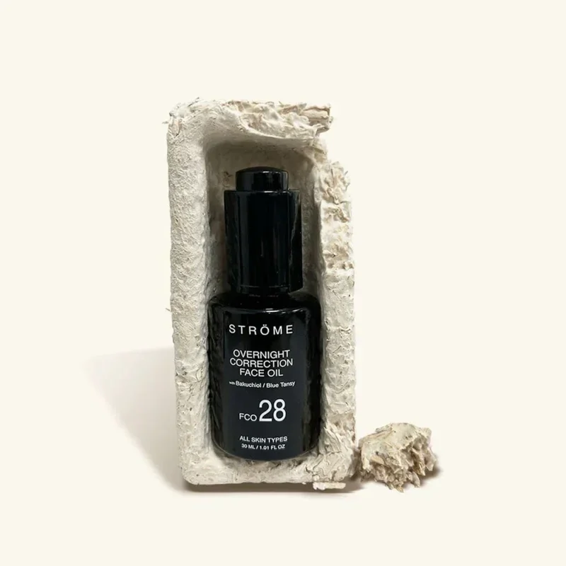 Ströme Overnight Correction Face Oil is 100% natuurlijk, 90,80% biologisch, vegan, dierproefvrij en COSMOS Organic gecertificeerd. De verpakking is composteerbaar en de ingrediënten zijn ethisch geproduceerd – een pure en bewuste keuze voor zowel je huid als het milieu.