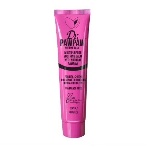 Dr. PAWPAW Balm Hot Pink bevat natuurlijke pawpaw en heeft hydraterende, voedende eigenschappen die verzachten, kalmeren en verlichting bieden. Deze ongeparfumeerde, multifuntionele balsem heeft een warm roze tint voor lippen en wangen.