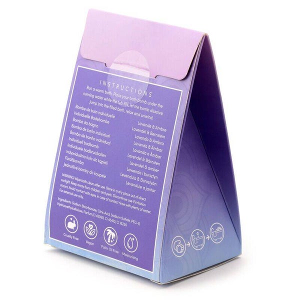 De bruisbal weegt 150 g en zit verpakt in een stijlvolle paarse giftbox die direct klaar is om cadeau te geven. Zodra je de bruisbal in warm water laat bruisen, vult de badkamer zich met de kalmerende geur van lavendel & amber. Het resultaat: een zachte huid, ontspanning van top tot teen en een moment van pure selfcare.