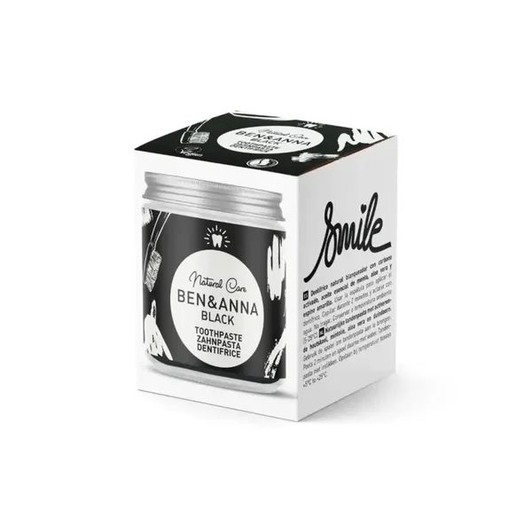 Ben & Anna Natural Care Toothpaste Black is een krachtige, natuurlijke en vegan tandpasta in een herbruikbaar glazen potje met aluminium dekseltje, ontwikkeld voor wie houdt van een frisse mond, een grondige reiniging en een zero waste levensstijl. Deze zwarte tandpasta zonder fluoride onderscheidt zich duidelijk van de White-variant door haar intensere karakter en het gebruik van actieve kool uit bamboe. De combinatie van een stoere uitstraling en een bewuste samenstelling maakt deze tandpasta perfect voor iedereen die duurzame mondverzorging wil combineren met een krachtige poetsbeleving.