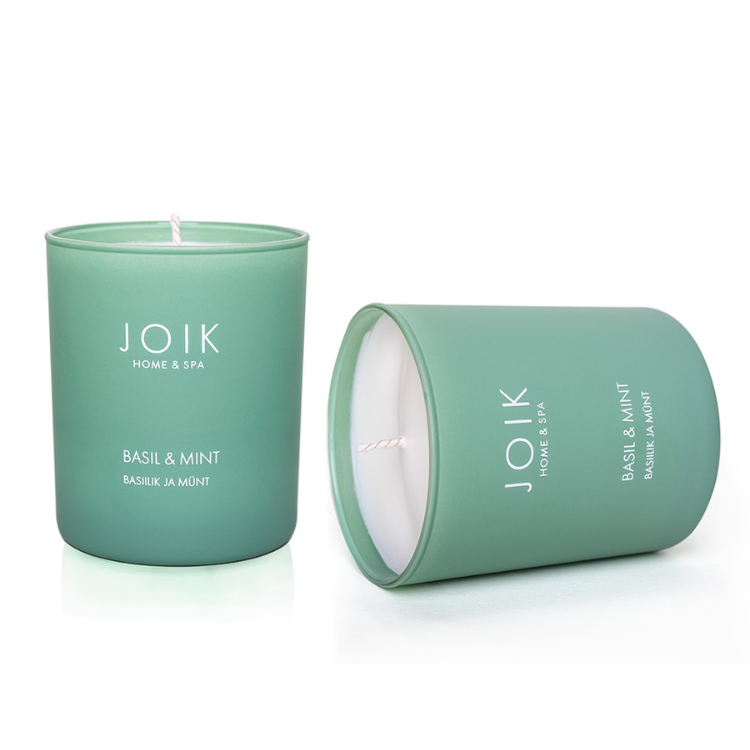 JOIK Home & Spa Scented Candle Basil & Mint is een luxe, natuurlijke en vegan geurkaars die je huis vult met een frisse, groene en kruidige geurbeleving. Deze duurzame geurkaars brengt het gevoel van een zonnige kas en een kruidentuin naar je interieur, waar verkwikkende munt samenkomt met aromatische basilicum en subtiele kruidige accenten.